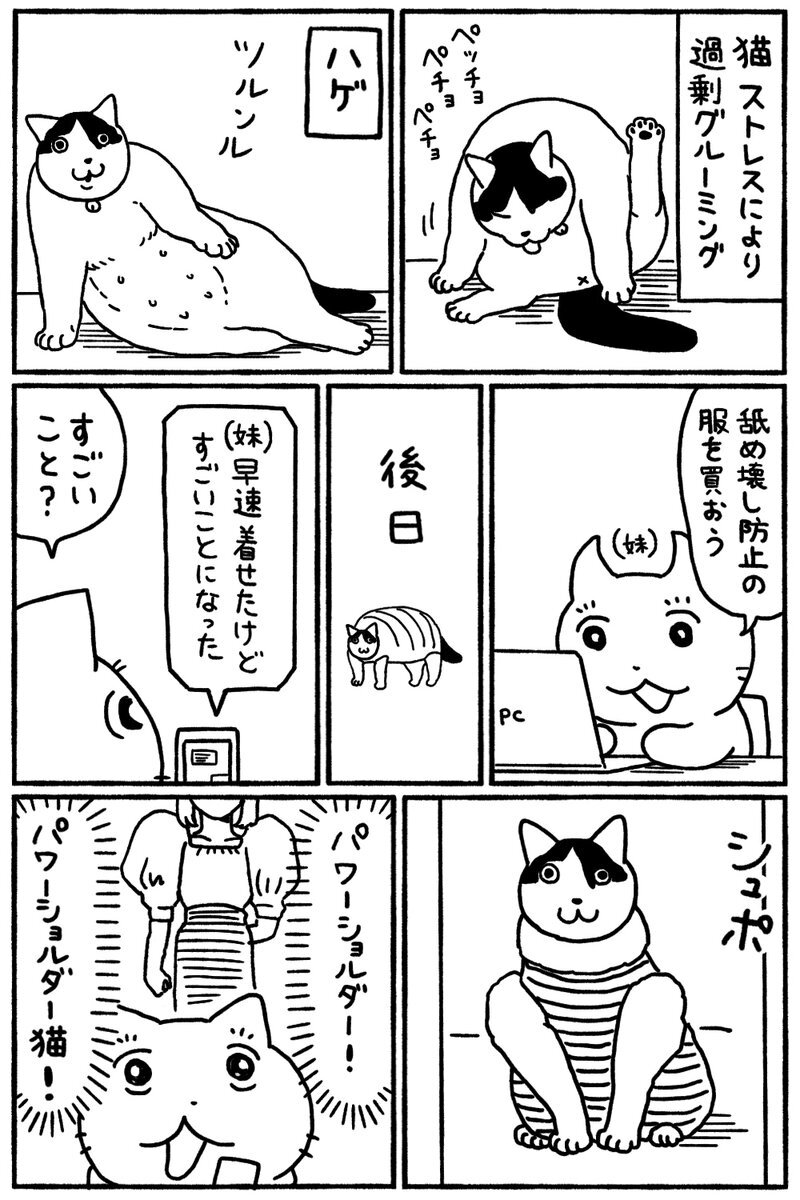 ちょっと流れとは違うんだけど。 バズってるこれで猫のグルーミング防止の服が市販されてると知って、買います。弟猫、お腹だけじゃなくて最近足まで毛繕いし過ぎてハゲハゲなの🥲 たぶんワイが仕事が忙しくてあまりかまってあげられないストレス。 x.com/murata116/stat…